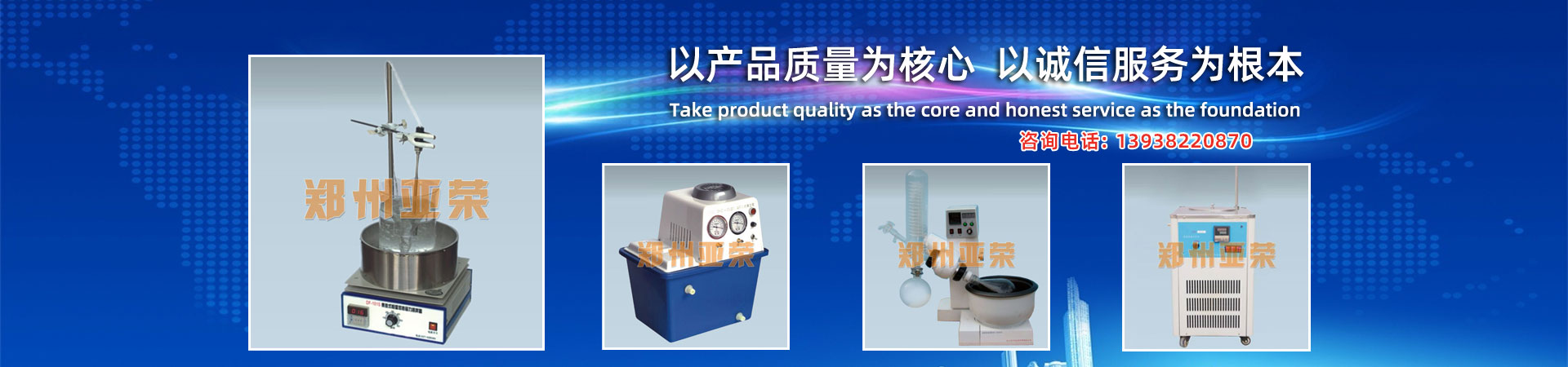 鄭州市亞榮儀器有限公司是主要銷售教學儀器的專業廠家,主要生產旋轉蒸發儀、雙層玻璃反應釜、旋轉蒸發器、循環水真空泵、玻璃儀器氣流烘干器低溫冷卻液循環泵、真空抽濾器、電熱鼓風干燥箱、真空干燥箱、水熱合成反應釜、高壓反應釜、數顯恒溫電熱套、高溫油浴鍋、磁力攪拌器、超聲波清洗器、水(油)浴鍋、冷凍干燥機、智能玻璃恒溫水浴、水槽,臺式高速離心機、紫外分析儀、控溫儀、振蕩器、微波化學反應器、顯微熔點測定儀、聚四氟乙烯攪拌棒、攪拌塞、攪拌子、升降臺等多種型號的教學儀器。